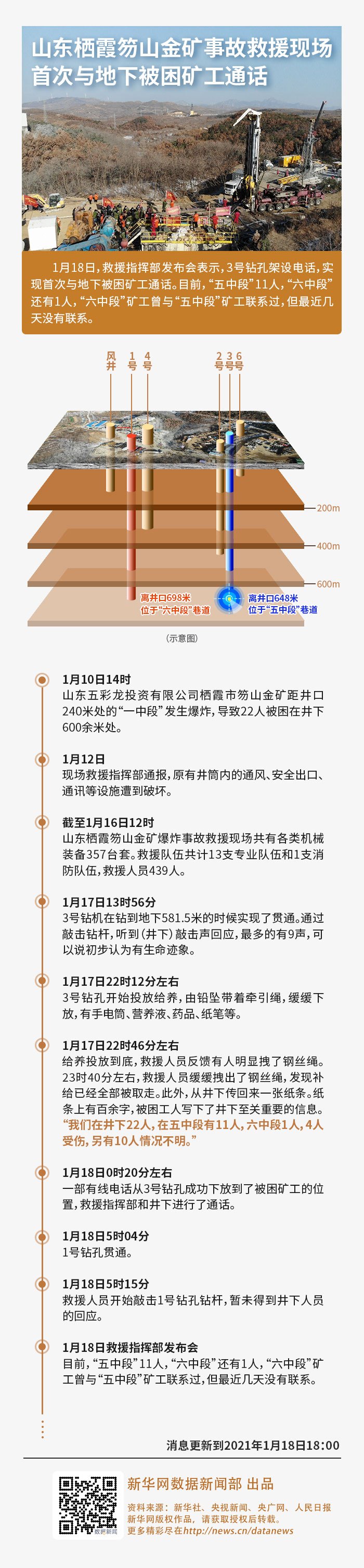 山東棲霞笏山金礦事故救援現場首次與地下被困礦工通話