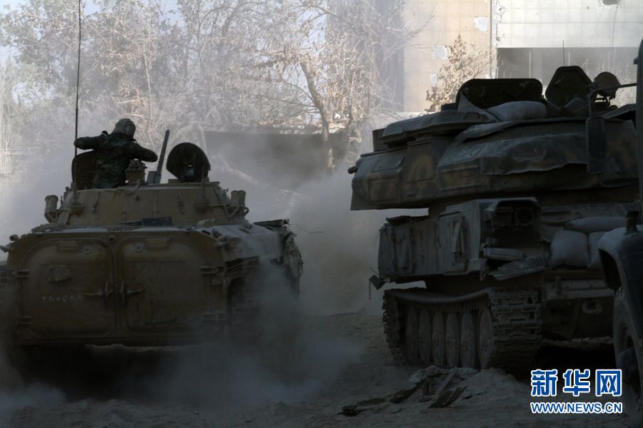 由于戰斗結束不久,為警惕附近建筑可能隱蔽的反對派狙擊手,政府軍士兵一直四處觀望。