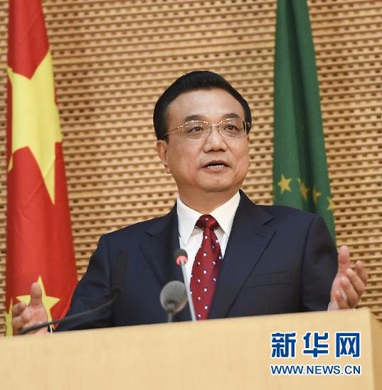 ??? 5月5日,國務院總理李克強在位于亞的斯亞貝巴的非洲聯盟總部發表題為《開創中非合作更加美好的未來》的演講。 新華社記者 李學仁 攝