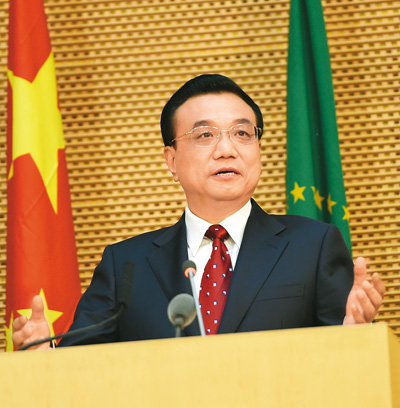 本報亞的斯亞貝巴5月5日電 (記者吳樂珺、倪濤)國務院總理李克強當?shù)貢r間5日在位于亞的斯亞貝巴的非洲聯(lián)盟總部發(fā)表題為《開創(chuàng)中非合作更加美好的未來》的演講。