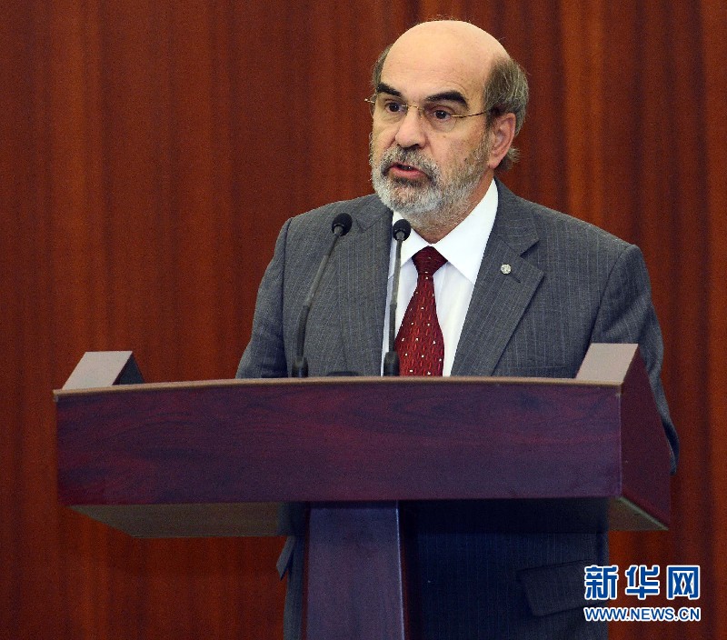 ????6月6日,在烏茲別克斯坦首都塔什干國際會議宮,聯合國糧農組織總干事若澤·格拉齊亞諾·達席爾瓦在講話。(沙達提 攝)
