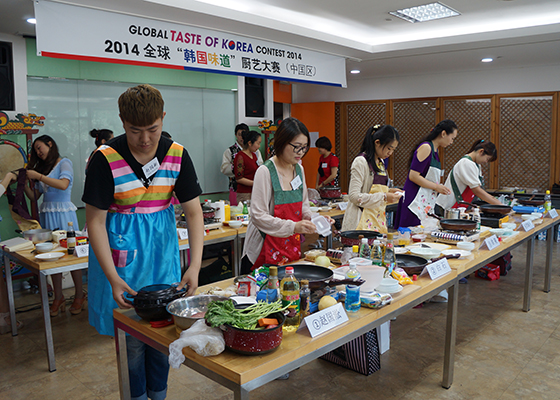 ????6月28日,駐華韓國文化院,2014“韓國味道”廚藝大賽現場。圖為參賽選手緊張有序地準備中。新華網 王俊景 攝