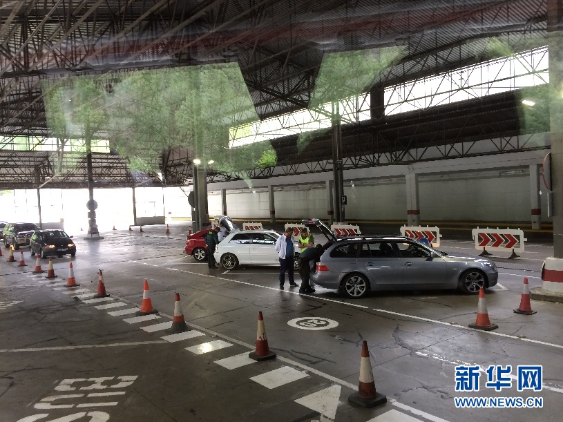????西班牙的海關人員正在抽查從安道爾入境西班牙的車輛。(周喆 攝)