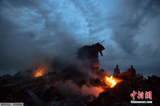 7月17日,馬來西亞一架載有295人的777客機在烏克蘭靠近俄羅斯邊界墜毀。圖為馬航波音777客機在頓涅茨克地區墜毀的現場。