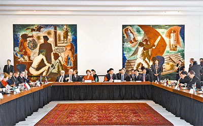 會晤開始前,習近平與羅塞夫共同迎接出席會晤的拉美和加勒比國家領導人和代表,同他們一一握手并集體合影。