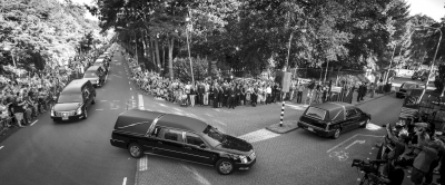 7月23日,護(hù)送馬航MH17航班遇難者遺體的汽車經(jīng)過(guò)大街,荷蘭民眾街頭目送并寄托哀思。圖/CFP