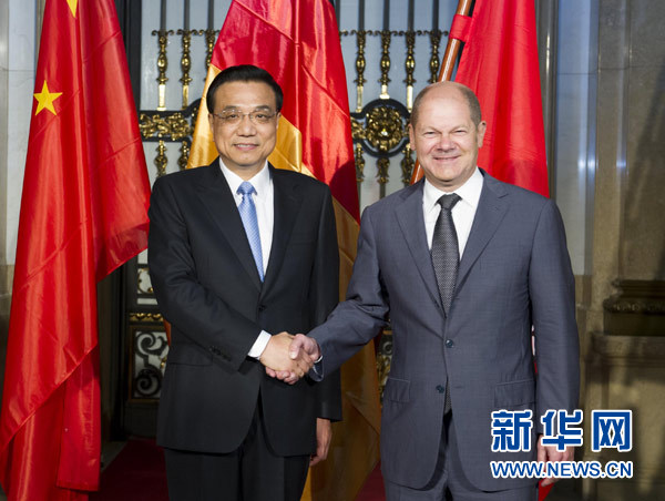 當?shù)貢r間10月11日上午,中國國務(wù)院總理李克強在德國漢堡市會見市長肖爾茨。 新華社記者謝環(huán)馳攝