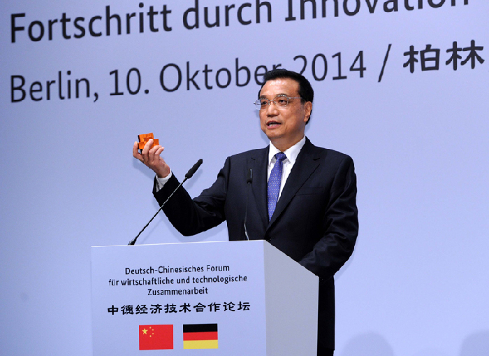 與默克爾共同出席第七屆中德經濟技術合作論壇時,李克強在致辭最后提起,這次默克爾總理陪他逛了當地一家超市,買了兩張明信片送給他的家人,而他也帶來一份禮物,是中國天津中德職業技術學院學生的作品,學生們希望他在公開的場合把這個禮物送給默克爾,以表達對中德制造業深度融合的期待。