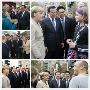 事件:李總理和默總理共同乘車前往出席中德經(jīng)濟(jì)技術(shù)論壇,途中他們臨時停車,與在街頭的德國民眾親切交流互動。