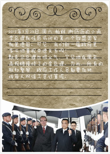 2013年3月15日,李克強當選國務院總理。默克爾是第一位給他打來祝賀電話的外國領導人。真是感動,太有心了!