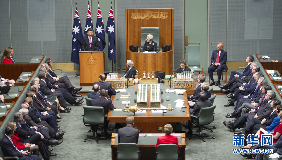 ????? ?11月17日,國家主席習近平在澳大利亞聯邦議會發表題為《攜手追尋中澳發展夢想 并肩實現地區繁榮穩定》的重要演講。 新華社記者 謝環馳攝