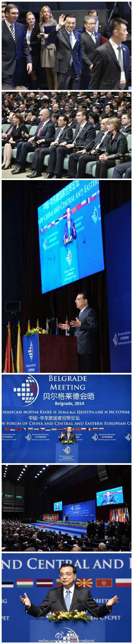 ??? 新華網北京12月17日電 據新華社“新國際”微博報道,當地時間16日下午,李克強在貝爾格萊德出席了中國-中東歐國家第四屆經貿論壇開幕式并致辭。總理表示,加強同中東歐國家合作,有利于推進歐洲一體化進程,實現中國和中東歐國家的互補。來自中國和中東歐16個國家的千余名企業代表參加了論壇。