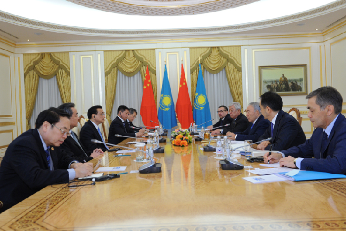 李克強會見哈薩克斯坦總統納扎爾巴耶夫。新華社 饒愛民 攝