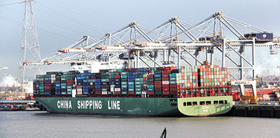 停泊在荷蘭鹿特丹港的中國船只。王斌來攝