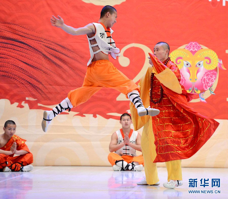 2月4日晚,在烏茲別克斯坦首都塔什干突厥宮,藝術家在表演中國武術和舞蹈。新華網記者 沙達提 攝