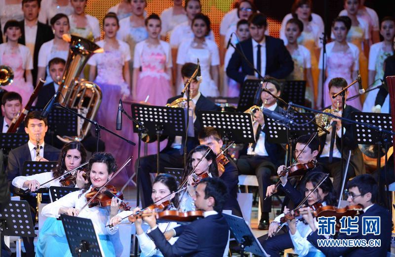 ????3月25日晚,烏茲別克斯坦首都塔什干“烏茲別克斯坦國際論壇宮”,由烏茲別克斯坦文化體育部等多個部門聯合組織舉辦的“春天交響曲”音樂晚會在首都塔什干“烏茲別克斯坦國際論壇宮”精彩上演,烏茲別克斯坦青年藝術家們向來自烏科學、文化、藝術和體育等各界人士代表、駐烏外國使節和國際組織代表以及前來參加烏總統選舉的國際和國內觀察員近2500余名觀眾獻上一場世界著名交響曲和烏茲別克斯坦傳統民族音樂融為一體的精彩音樂盛宴。新華網記者沙達提 攝