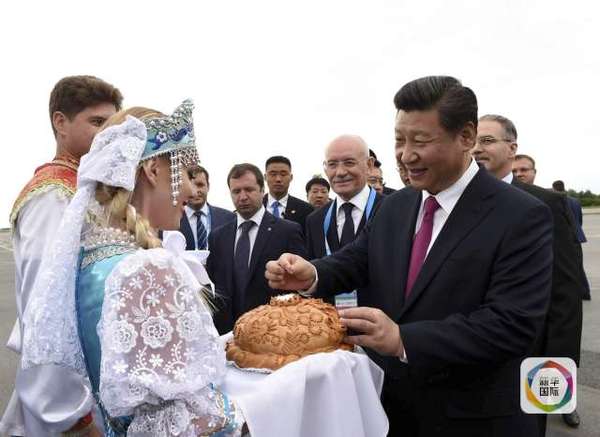 7月8日,國家主席習(xí)近平乘坐專機(jī)抵達(dá)烏法,應(yīng)俄羅斯聯(lián)邦總統(tǒng)普京邀請(qǐng),出席金磚國家領(lǐng)導(dǎo)人第七次會(huì)晤和上海合作組織成員國元首理事會(huì)第十五次會(huì)議。這是在烏法國際機(jī)場,身穿俄羅斯民族服飾的青年按當(dāng)?shù)赜淤F賓的傳統(tǒng),向習(xí)近平敬獻(xiàn)面包和鹽。習(xí)近平掰下一小塊面包,蘸鹽品嘗。新華社記者饒愛民攝