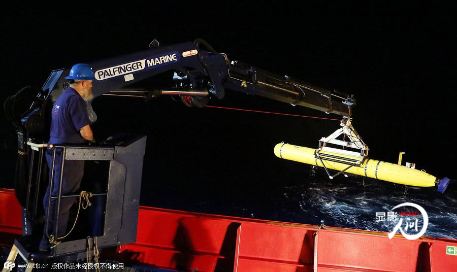 而隨著搜索時間越來越長,搜救工作也逐步從水面搜尋轉化為水下搜救。印度洋,美國海軍“藍鰭金槍魚-21”水下航行器下水搜尋馬航失聯航班。據媒體報道,迄今為止,已有450萬平方公里的海域被搜索過,搜尋費用超過1.3億美元。
