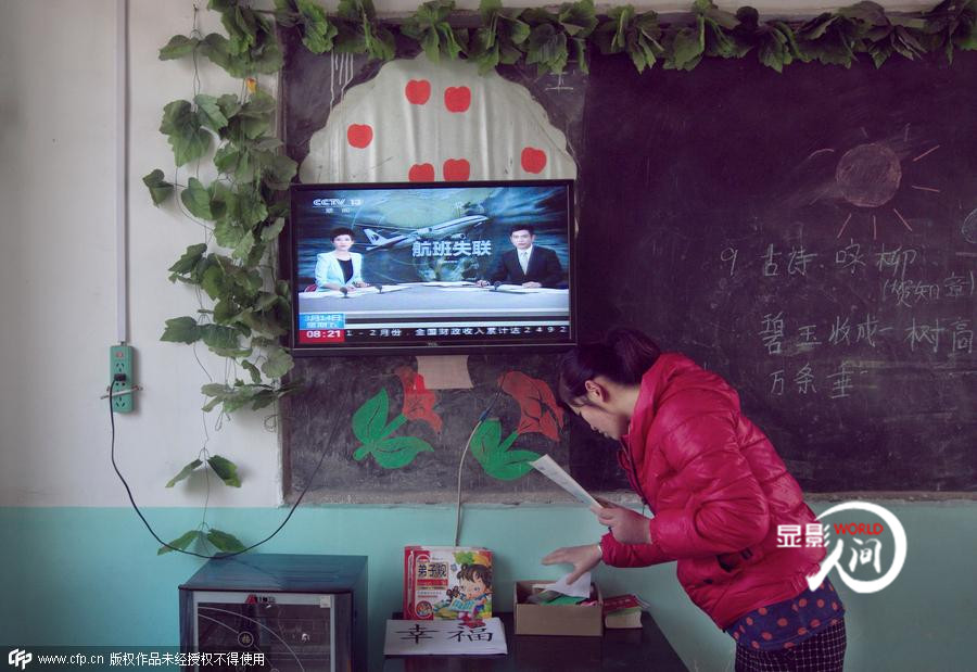 2014年3月8日上午8時左右,馬航宣布MH370航班失聯。這一消息猶如一個重磅炸彈,迅速引起了全國乃至世界范圍內的民眾的持續關注。2014年3月14日,在山東曲阜一家幼兒園,一名幼兒教師在備課,黑板上的電視正在播放失聯航班的報道。