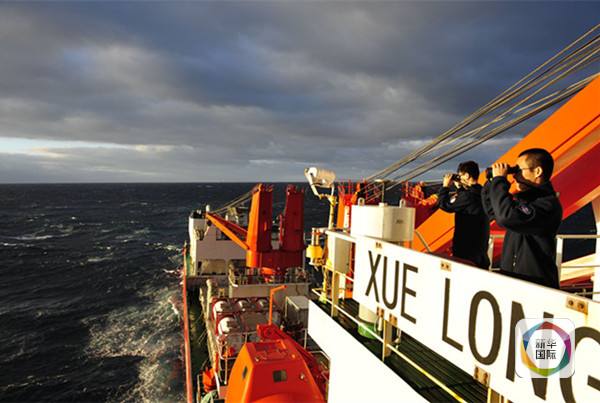 3月28日,“雪龍”號(hào)科考船的工作人員手持望遠(yuǎn)鏡觀察海上情況。(新華社記者張建松攝)