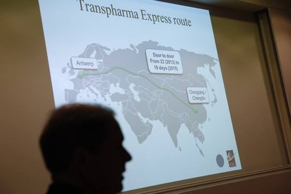 ↑港務局、碼頭運營商、船運企業、貨主等各方人士聆聽安特衛普港與中國“一帶一路”對接的介紹。