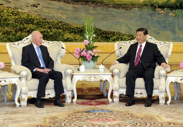中新關系的另一奠基人新加坡建國總理李光耀生前曾多次訪問中國,與多位中國領導人會面。2011年5月,時任國家副主席習近平在北京會見了他,高度贊賞他作為中新關系奠基人和中國人民的老朋友多年來為促進中新關系發展作出的重要貢獻。
