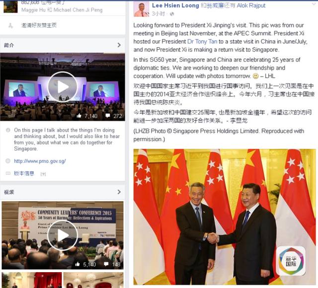 新華網北京11月6日電 國家主席習近平到訪新加坡的幾個小時前,新加坡總理李顯龍在自己的臉書主頁上表示,歡迎習主席到新加坡進行國事訪問。