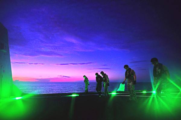 圖為 2015年5月25日,新加坡海軍“剛毅”號(hào)護(hù)衛(wèi)艦士兵進(jìn)行直升機(jī)起降準(zhǔn)備工作。當(dāng)日,中國海軍“玉林”號(hào)導(dǎo)彈護(hù)衛(wèi)艦與新加坡海軍“剛毅”號(hào)護(hù)衛(wèi)艦、“奮勇”號(hào)導(dǎo)彈巡邏艦在馬來半島以東海域順利完成了代號(hào)為“中新合作-2015”的海上雙邊軍事演習(xí)。這是中新兩國首次進(jìn)行的雙邊海上軍事演習(xí)。