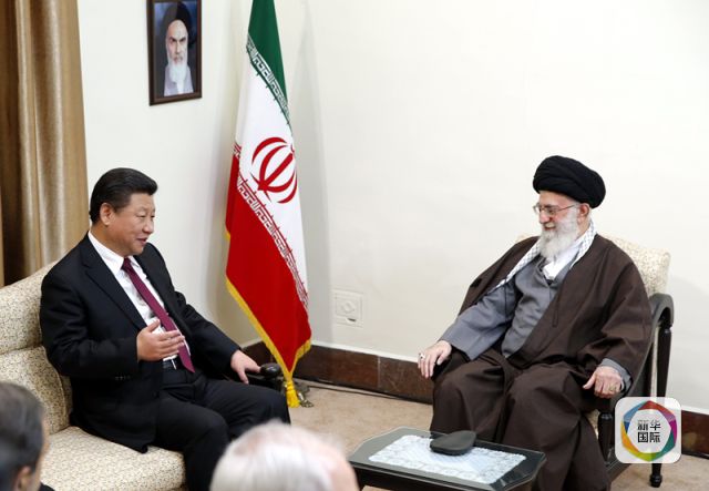 1月23日,國家主席習近平在德黑蘭會見伊朗最高領袖哈梅內伊。(新華社記者鞠鵬攝)