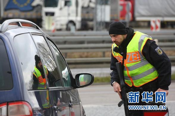 在比利時東部靠近德國亞琛的邊界,德國警方設置了路障,檢查過往車輛。記者在高速公路檢查站看到,兩名德國特警把守兩邊,所有車輛逐一通過。需要進一步檢查的車輛按指揮進入特定區域,德國警方要求被檢車輛司機出示證件,并對汽車內部進行仔細翻查。檢查站中??苛耍保岸噍v各型警車,值勤警察荷槍實彈,檢查站旁還有一架警方直升機。