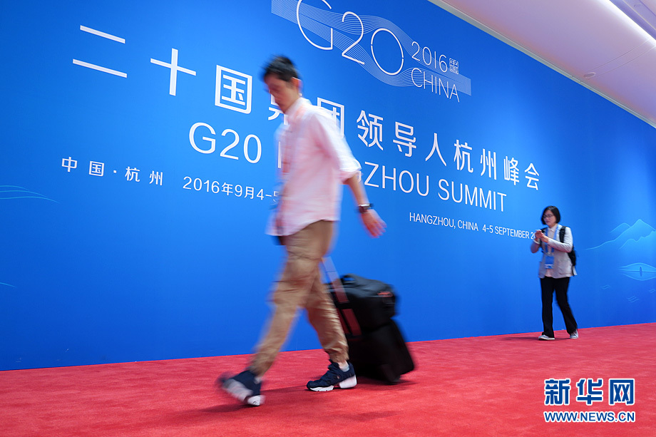 9月4日上午,金磚國家領導人非正式會晤在浙江杭州舉行。當日,G20峰會新聞中心一派繁忙景象。新華網記者 陳競超 攝