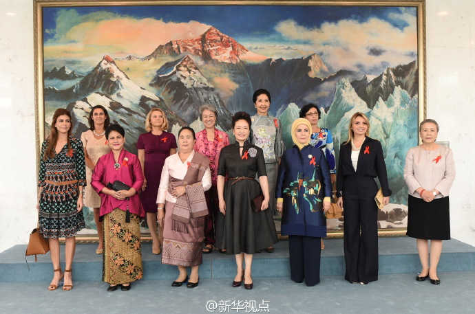 彭麗媛同G20杭州峰會外方代表團團長夫人出席“艾滋病防治宣傳校園行”活動