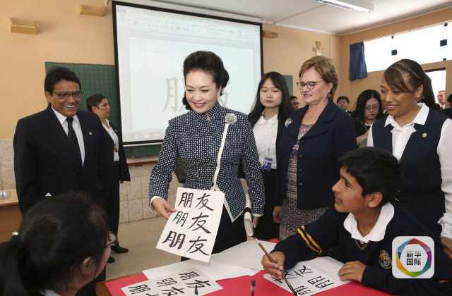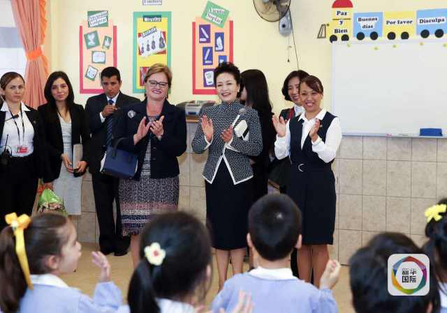 ??? 彭麗媛抵達(dá)時,秘魯總統(tǒng)夫人蘭格和學(xué)校校長在下車處迎接,校長為彭麗媛獻(xiàn)上鮮花。若望二十三世秘中學(xué)校創(chuàng)辦于1962年,是從幼兒園到中學(xué)教育的全日制學(xué)校,也是秘魯乃至南美洲最具影響的華文學(xué)校之一。