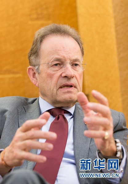 2016年12月19日,在瑞士日內瓦萬國宮,聯合國日內瓦辦事處總干事穆勒接受新華社專訪。“習近平主席的到訪,再次表明中國對聯合國多邊主義、對聯合國機構工作和對聯合國大家庭的支持。”聯合國日內瓦辦事處總干事邁克爾·穆勒日前在日內瓦萬國宮接受新華社記者專訪時這樣說。新華社記者 徐金泉 攝