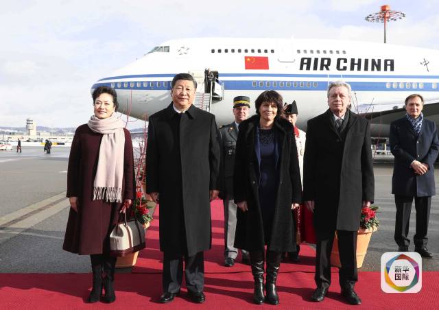 1月15日,國家主席習近平乘專機抵達蘇黎世,開始對瑞士聯邦進行國事訪問。這是瑞士聯邦主席洛伊特哈德在機場為習近平和夫人彭麗媛舉行隆重歡迎儀式。(新華社記者蘭紅光攝)
