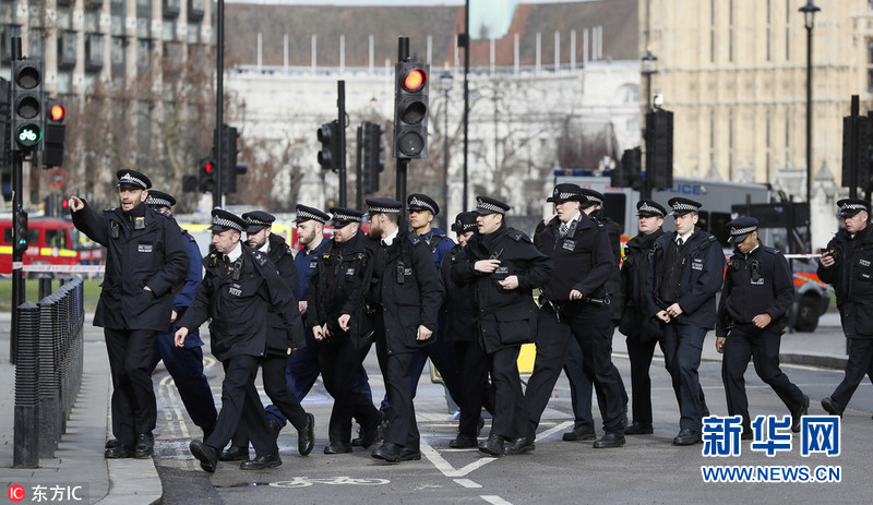 當地時間2017年3月22日,英國倫敦,英國威斯敏斯特議會大廈附近發(fā)生襲擊事件,威斯敏斯特橋上有車輛沖撞行人;另外有持刀歹徒攻擊議會大廈執(zhí)勤警察后被擊斃,報道稱多人受傷。襲擊發(fā)生后,議會大廈臨時關閉,英國議會下院的會議暫停。倫敦警方目前暫時將此事作為恐怖事件處理。據外媒報道,英國警方封閉了倫敦議會大廈周邊的街道。圖片來源:東方IC