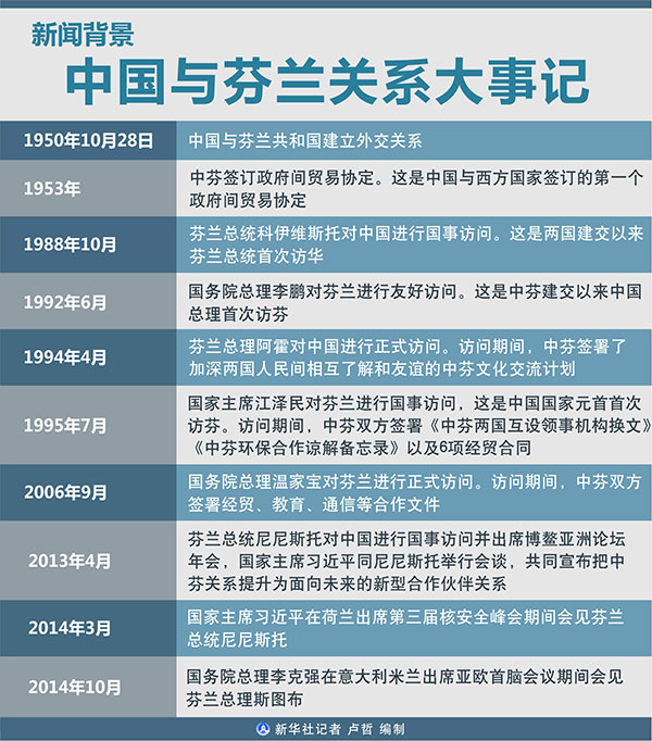 圖表:新聞背景:中國與芬蘭關系大事記 新華社記者 盧哲 編制