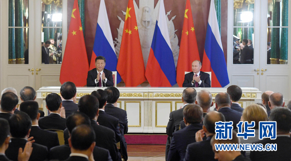 7月4日,國家主席習近平在莫斯科克里姆林宮同俄羅斯總統(tǒng)普京舉行會談。會談后,兩國元首簽署了《中華人民共和國和俄羅斯聯(lián)邦關于進一步深化全面戰(zhàn)略協(xié)作伙伴關系的聯(lián)合聲明》《中華人民共和國和俄羅斯聯(lián)邦關于當前世界形勢和重大國際問題的聯(lián)合聲明》,批準了《〈中華人民共和國和俄羅斯聯(lián)邦睦鄰友好合作條約〉實施綱要(2017年至2020年)》并見證了《中華人民共和國外交部和俄羅斯聯(lián)邦外交部關于朝鮮半島問題的聯(lián)合聲明》以及經(jīng)貿(mào)、農(nóng)業(yè)、能源、基礎設施建設、金融、文化、創(chuàng)新、媒體、信息網(wǎng)絡、檢驗檢疫等領域多項雙邊合作文件的交換。新華社記者 饒愛民 攝