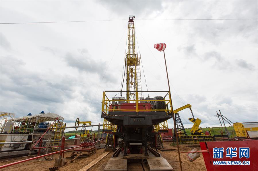這是6月2日在俄羅斯伊熱夫斯克的UDM項目鉆井現場拍攝的中國制造的移動鉆機。新華社記者白雪騏攝