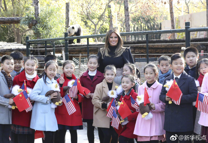 11月10日上午,美國總統特朗普的夫人梅拉尼婭參觀北京動物園熊貓館。來看現場照片!(記者龐興雷、王慧慧)(新華社“新華視點”微博報道)