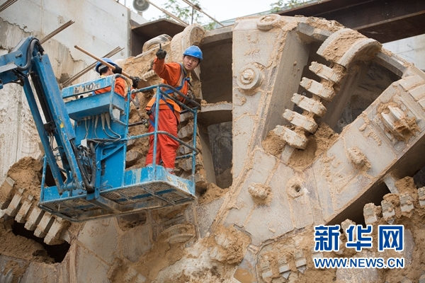 中國鐵建中土集團實施的特拉維夫紅線輕軌首段盾構隧道區間貫通現場。新華網發(郭昱 攝)