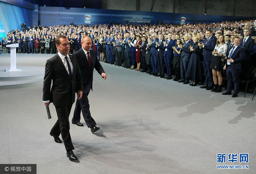 當(dāng)?shù)貢r(shí)間2017年12月23日,俄羅斯莫斯科,俄羅斯總統(tǒng)普京出席第17次統(tǒng)一俄羅斯黨大會(huì)。(圖片來(lái)源:視覺(jué)中國(guó))