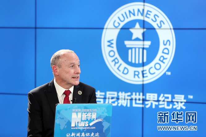 吉尼斯世界紀錄全球總裁阿里斯塔爾·理查茲接受新華網訪談。新華網發 郭小天攝