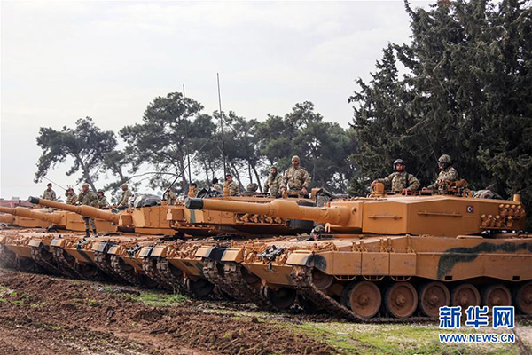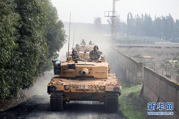 1月21日,在土耳其哈塔伊省與敘利亞邊境地區,土軍地面部隊開往敘利亞北部阿夫林。土耳其總理耶爾德勒姆21日宣布,土耳其軍隊當天上午已進入敘利亞邊境,展開對敘北部阿夫林的地面軍事行動。 新華社發