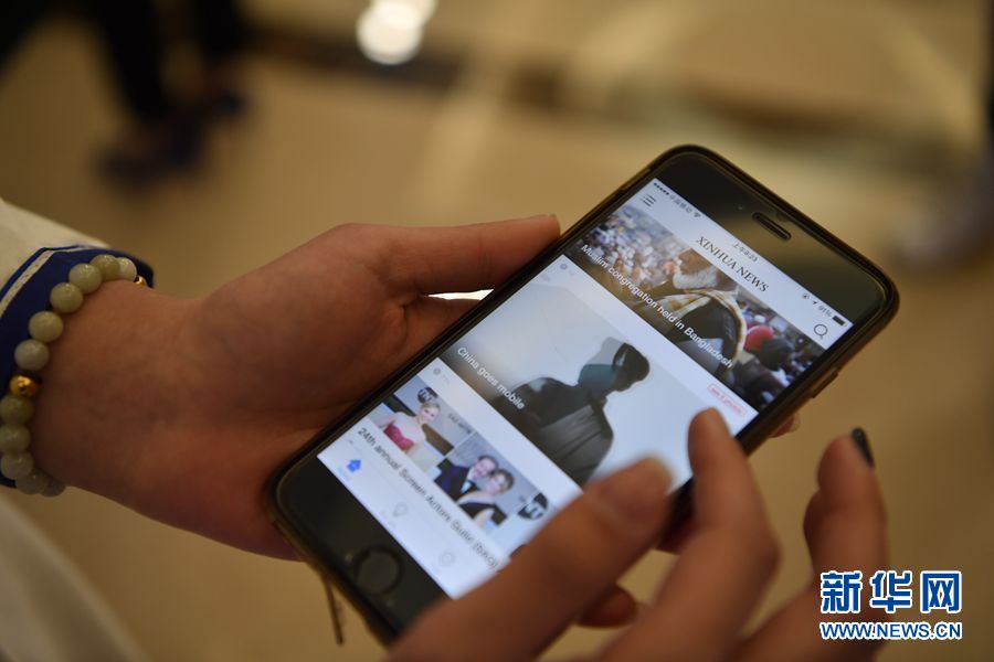 1月23日上午10:00,新華社英文客戶端上線發布會在總社大廈多功能廳舉行。圖為工作人員展示新華社英文客戶端。新華社記者 金良快攝