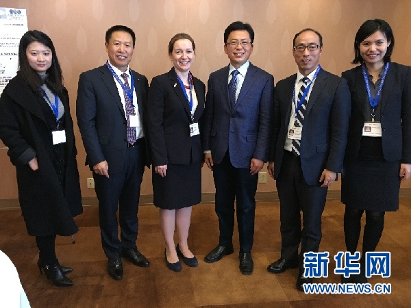 中國駐舊金山副總領(lǐng)事任發(fā)強(qiáng)(右三)等與會(huì)代表合影。新華網(wǎng)發(fā)