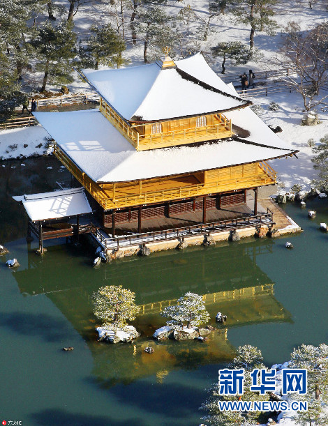 1月25日,大雪過后,日本京都一片銀裝素裹,金閣寺、清水寺披上“雪衣”。(圖片來源:東方IC)