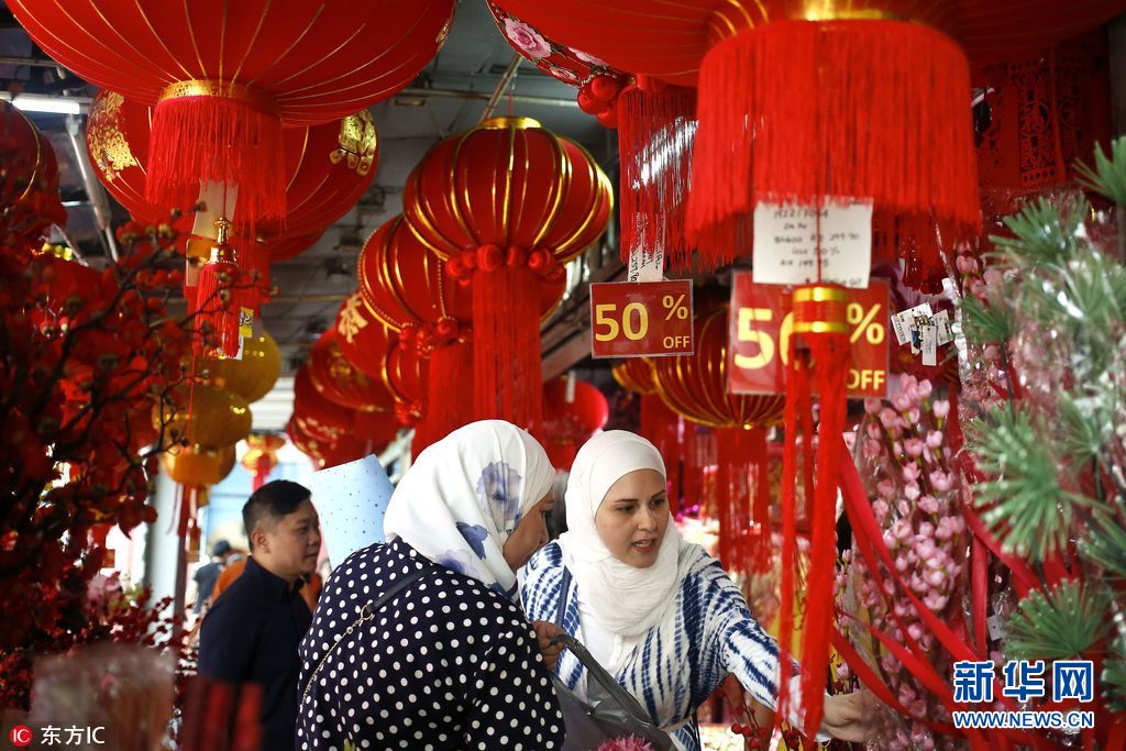 當(dāng)?shù)貢r(shí)間2018年2月11日,馬來西亞吉隆坡,中國農(nóng)歷新年將至,當(dāng)?shù)啬曦浭袌黾t火。(圖片來源:東方IC)