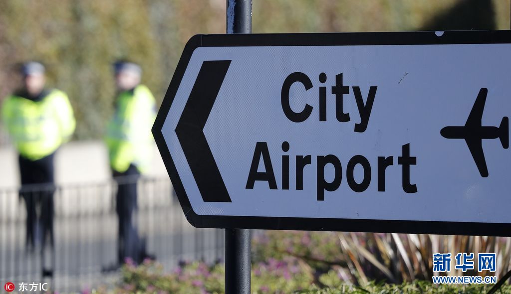 當地時間2018年2月12日,英國倫敦,倫敦城市機場附近泰晤士河道內發現一枚二戰遺留炸彈,警方封鎖現場。機場被迫關閉,航班取消。(圖片來源:東方IC)