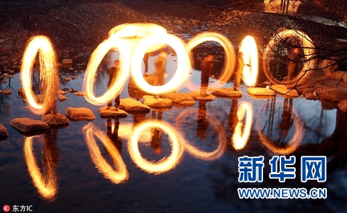 韓國民眾玩火圈辟邪,迎接元宵節。(圖片來源:東方IC)